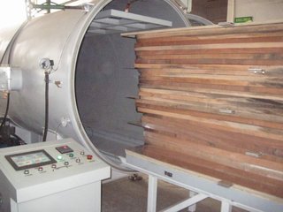 真空干燥即在密闭容器内、在负压条件下对木材进行干燥。 间歇真空干燥是按常压加热和负压干燥两个阶段交替进行,用蒸汽或热水加热,也有少数用烟气或电加热。连续真空干燥是加热和真空同时连续进行,用热板 (以热水为热媒)、电热毯或高频电介质加热。真空干燥的优点是可以在较低的温度下加快干燥速度,保证干燥质量。