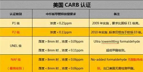 美国加州CARB标准是针对板材甲醛释放韩玲控制的法规。目前该法规是关于复合木制品的甲醛释放量的最严格的标准之一,并且要求工厂要严格按照法规要求的质量管理体系来监管工厂的生产过程;从2009年1月1日起没有通过CARB认证的复合木制品和含有复合木制品的成品都不能获得进入美国加州的“绿卡”。