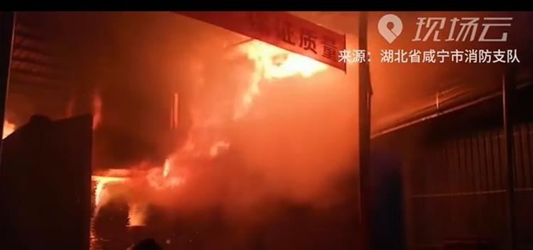 湖北咸宁一木材加工厂突发大火