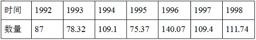 广东省1992年--1998年胶合板进口统计表(计量单位:万立方米)