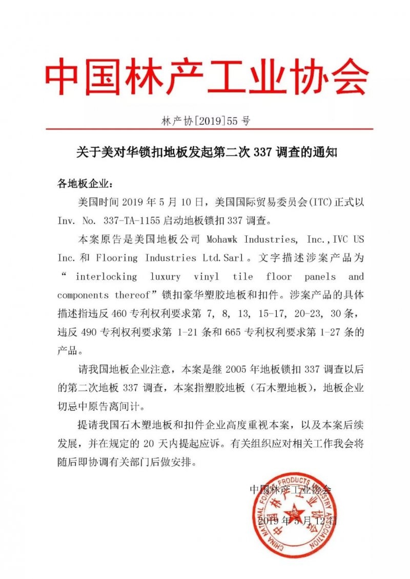 美对华锁扣地板发起第二次337调查