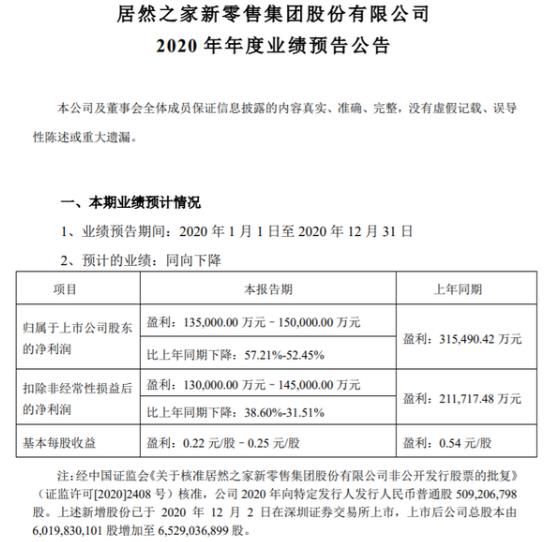 居然之家2020年预计净利13.5亿-15亿 下降52%-57%